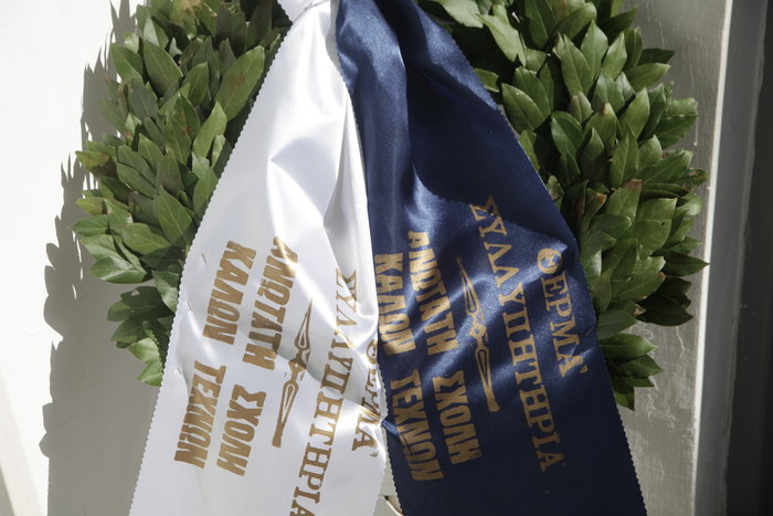 Στεφάνια έστειλαν, μεταξύ άλλων, ο ΣΥΡΙΖΑ, ο πρόεδρος της Βουλής, οι δήμαρχοι και τα δημοτικά συμβούλια Αθηναίων και Χαλκιδαίων, η Εθνική Πινακοθήκη, ο Βασίλης και η Μαρίνα Θεοχαράκη, τα Τμήματα Εικαστικών και Εφαρμοσμένων Τεχνών του ΑΠΘ και του Πανεπιστημίου Μακεδονίας, η ΑΣΚΤ, ο Βλάσης Βέλλιος και η Vellios School of Art, η Εταιρεία Ευβοϊκών Σπουδών Τοπικό Τμήμα Χαλκίδας, ο Πέτρος Ζουμπουλάκης, το Ίδρυμα Ευγενίδου, ο Μιχάλης Σάλλας και η Σοφία Στάικου κ.ά.