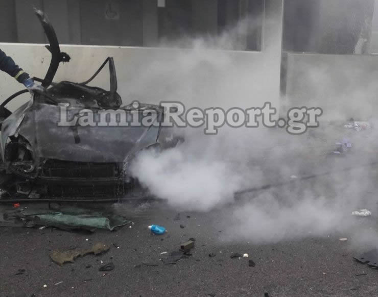 Λίγο αργότερα, ένα άλλο αυτοκίνητο έπεσε με μεγάλη ταχύτητα πάνω στο σταματημένο όχημα, με τα δύο Ι.Χ. να τυλίγονται στις φλόγες.
