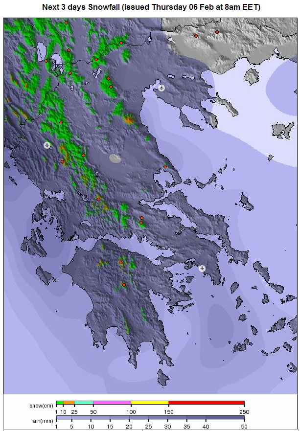 Στον χάρτη θα δείτε σε ποιές περιοχές της Ελλάδας θα χιονίσει συνολικά τις επόμενες τρείς ημέρες.