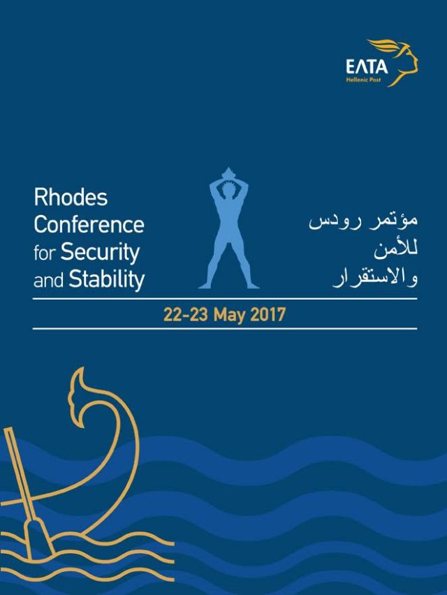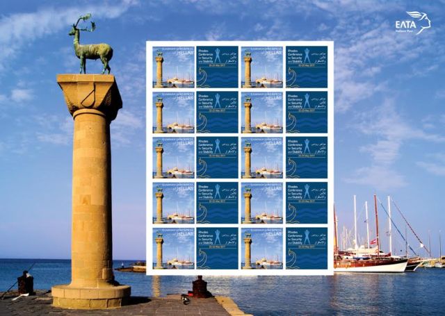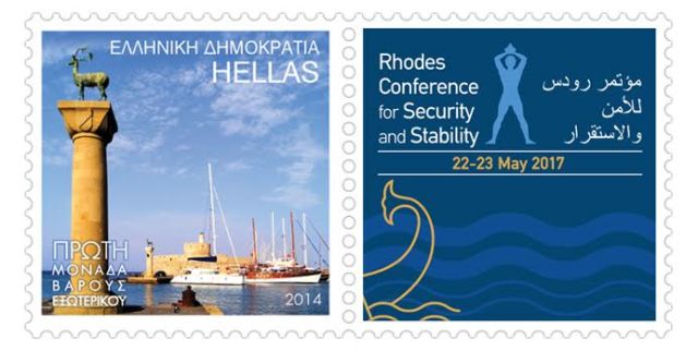 Μετά το Φόρουμ των Αρχαίων Πολιτισμών στο Ζάππειο για το οποίο εκδόθηκε ειδικό γραμματόσημο και αναμνηστικό λεύκωμα, εμπνέονται από τη Διάσκεψη της Ρόδου για την Ασφάλεια και Σταθερότητα (22-23/05/2017) και δημιουργούν, προβάλλοντας με ένα ιδιαίτερο και πρωτότυπο τρόπο το λογότυπο της Διάσκεψης, την πρωτοβουλία του Υπουργείου Εξωτερικών αλλά και το ίδιο το νησί της Ρόδου.