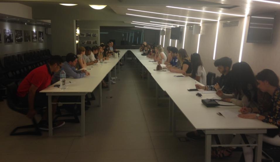 Με τους φοιτητές είχε την ευκαιρία να συνομιλήσει κι ο Στέφανος Μυτιληναίος του TRIBUNE, ενώ να σημειωθεί εδώ ότι η καθηγήτρια Νάνσυ Μπίσκα είναι και δημοσιογράφος, επί πολλά χρόνια ανταποκρίτρια στη Νέα Υόρκη, άρθρα της έχουν δημοσιευτεί και στο TRIBUNE, ενώ είναι και συντονίστρια της παγκόσμιας εκστρατείας της Ομογένειας για την άρση της προσωρινής αναγνώρισης του κράτους των Σκοπίων από τις ΗΠΑ με το όνομα “Μακεδονία”.
