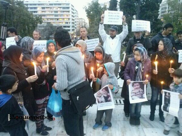 Διαμαρτυρία για τους νεκρούς στο Φαρμακονήσι πραγματοποιείται αυτήν τη στιγμή στην πλατεία Συντάγματος από μετανάστες μέλη της Αφγανικής κοινότητας στην Ελλάδα.