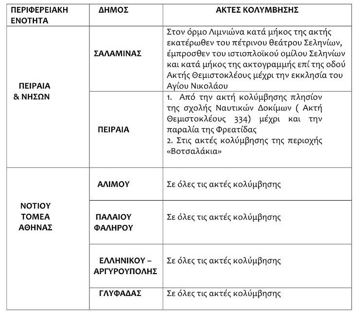 Στην Υπουργική Απόφαση επισημαίνεται, για μια ακόμη φορά, η ανάγκη σήμανσης των ακτών που απαγορεύεται η κολύμβηση με ευθύνη της Τοπικής Αυτοδιοίκησης, ώστε αφού ενημερωθούν από τις αρμόδιες Διευθύνσεις Περιβαλλοντικής Υγιεινής και Υγειονομικών Ελέγχων να τοποθετήσουν απαγορευτικές πινακίδες στα σημεία που κρίθηκαν ακατάλληλα για κολύμβηση.