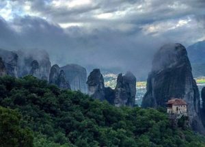 Υπό καταρρακτώδη βροχή και ομίχλη, βρέθηκε στα Μετέωρα και επισκέφθηκε τις Ιερές Μονές.