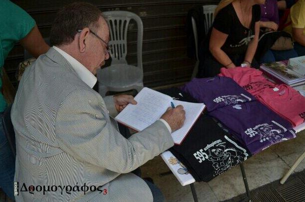 Ο Ηλίας Μαμαλάκης πήγε στο ισόγειο του υπουργείου Οικονομικών όπου έχουν στρατοπεδεύσει τους τελευταίες μήνες οι καθαρίστριες, συζήτησε μαζί τους και υπέγραψε το κείμενο συμπαράστασης στον αγώνα τους.