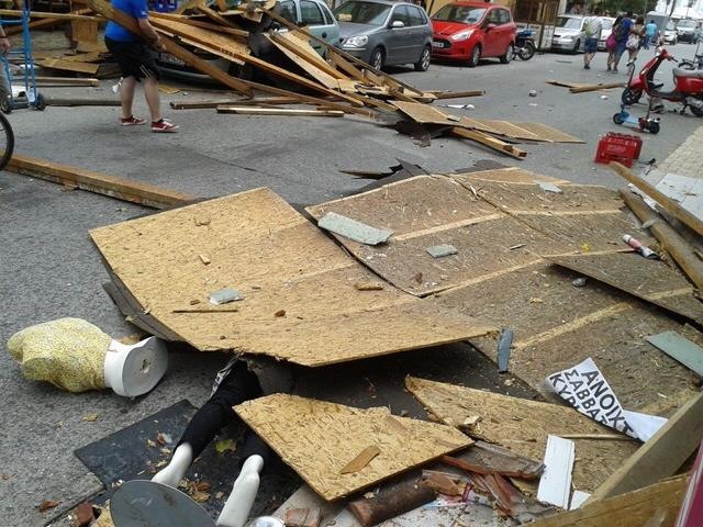Σκηνές από βομβαρδισμένο τοπίο κατέγραψε ο φωτογραφικός φακός του Katerini-news με τους καταστηματάρχες και τους περαστικούς να μην μπορούν να πιστέψουν το μέγεθος της καταστροφής.