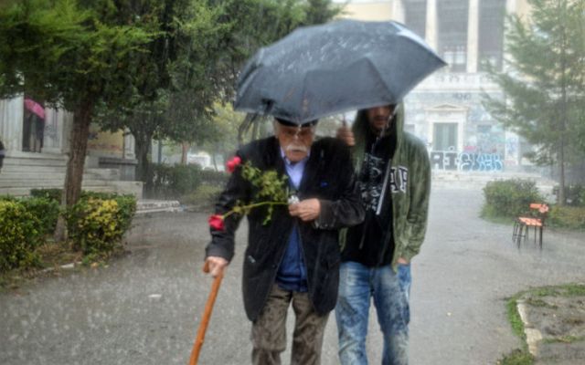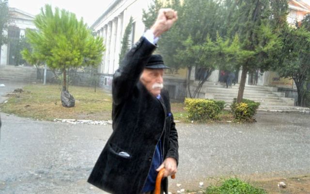 Μπορεί να είναι 95 ετών, μπορεί να έβρεχε καταρρακτωδώς την ώρα που έμπαινε στον προαύλιο χώρο του Πολυτεχνείου, αλλά ο Μανώλης Γλέζος δεν πτοήθηκε και τίμησε την επέτειο της εξέγερσης της 17ης Νοεμβρίου.