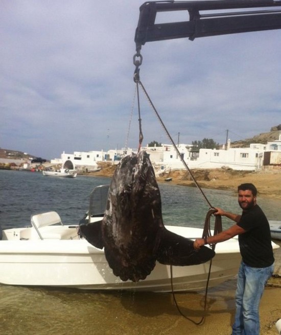 Τον γύρο του διαδικτύου κάνουν οι φωτογραφίες του Νίκου Κοντιζά παρέα με το γιγαντιαίο φεγγαρόψαρο που έπιασε στην Μύκονο.