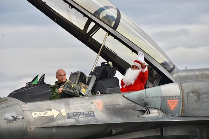 Κι αυτό γιατί ο δημοφιλέστερος Άγιος των παιδιών ήρθε από τον ουρανό…. μέσα σε ένα πολεμικό αεροσκάφος F-16!