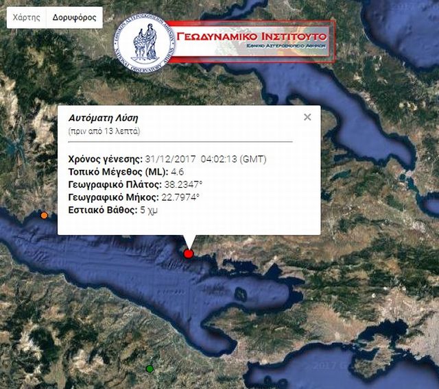 Αισθητός σεισμός σε Αθήνα και Πειραιά σημειώθηκε στις 06.02 τα ξημερώματα παραμονής Πρωτοχρονιάς. Σύμφωνα με τις πρώτες πληροφορίες, ο σεισμός ήταν μεγέθους 4,6 Ρίχτερ -σύμφωνα με το Γεωδυναμικό Ινστιτούτο Αθηνών- και είχε επίκεντρο 21 χλμ βορειοανατολικά από το Ξυλόκαστρο, στον Κορινθιακό Κόλπο.