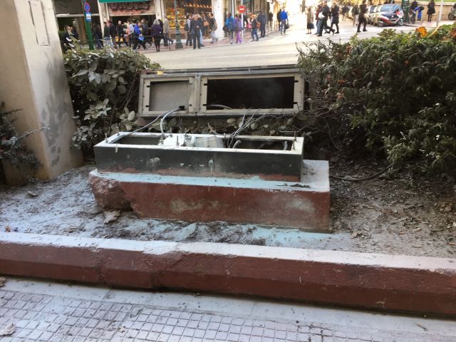 Αποχωρώντας ορισμένοι διαδηλωτές έβαλαν φωτιά σε ΚΑΦΑΟ με αυτόπτες μάρτυρες να περιγράφουν ότι οι δράστες είχαν μαζί τους και κόφτη για να ανοίξουν το μεταλλικό κουτί.