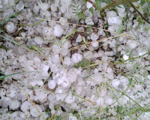 Η χαλαζόπτωση, που διήρκεσε περίπου 2,5 ώρες, έπληξε 5000 στρέμματα καλλιεργειών προκαλώντας ολική καταστροφή σε σιτηρά, καπνά, αμύγδαλα, αμπέλια, μήλα, πατάτες και καλαμπόκια, αναφέρει το onlarissa.gr.