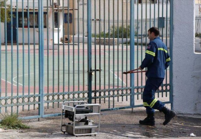 Οι εκπαιδευτικοί αντέδρασαν, έγινε κλήση της Πυροσβεστικής, το σχολείο άνοιξε και συνόδευσαν τη σημαιοφόρο και τους παραστάτες έως το χώρο κατάθεσης των στεφανιών.
