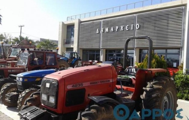Το Δημαρχείο της Μεσσήνης “κατέλαβαν” συμβολικά με τα τρακτέρ τους αγρότες της περιοχής, σε ένδειξη διαμαρτυρίας.