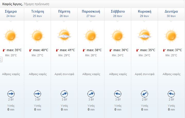 Τους 41 βαθμούς θα αγγίξει το θερμόμετρο την Πέμπτη ενώ η ζέστη θα γίνει έντονα αισθητή από αύριο που το θερμόμετρο θα είναι σταθερά πάνω από τους 37 βαθμούς πολλές περιοχές ενώ θα αγγίξει τους 40 βαθμούς στο Άργος.