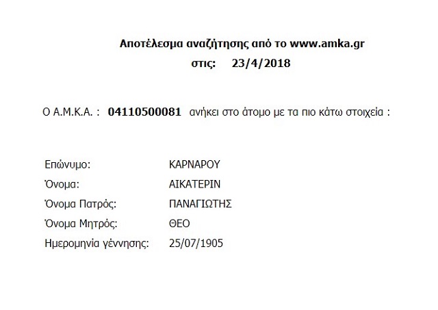 Σύμφωνα με όλα τα επίσημα έγγραφα και τις ηλεκτρονικές καταχωρίσεις (ΑΜΚΑ, αριθμός ταυτότητας, βιβλιάριο ΟΓΑ), η κα Καρνάρου είναι γεννημένη στις 25 Ιουλίου του 1905, δηλαδή το καλοκαίρι θα συμπληρώσει 113 χρόνια ζωής.
