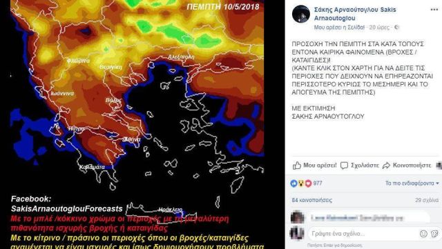 Ο Σάκης Αρναούτογλου ανήρτησε ένα χάρτη με τις περιοχές όπου θα πληγούν περισσότερο από τα ισχυρά φαινόμενα.