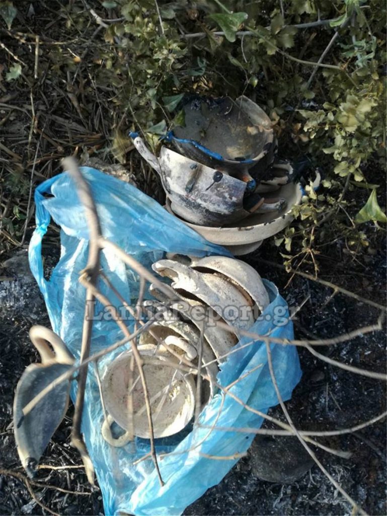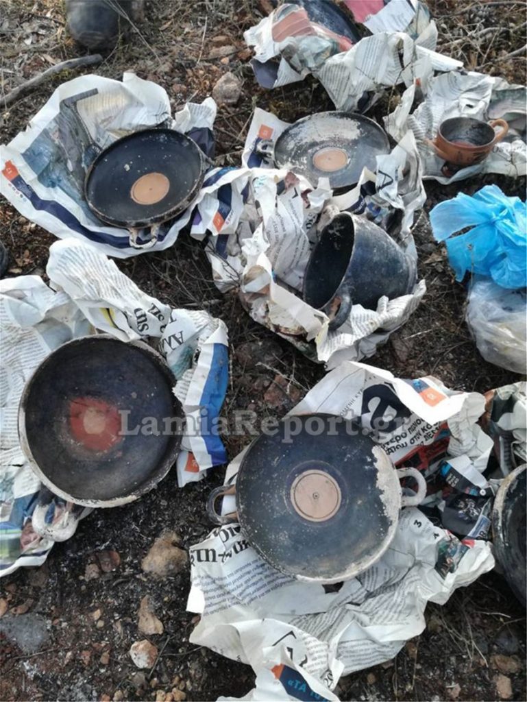 Αντί όμως για καμένα κλαδιά και αποκαΐδια βρεθήκαν μπροστά σε πολλά όμορφα αρχαία αντικείμενα που ήταν επιμελώς τοποθετημένα σε πανιά, χαρτιά εφημερίδων και σακούλες στο βουνό.