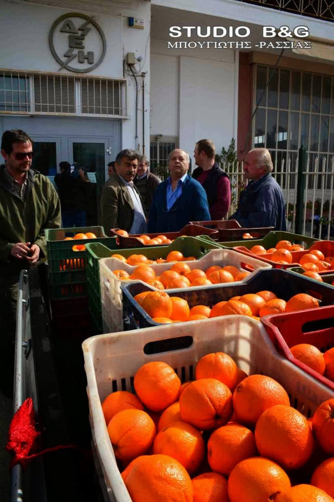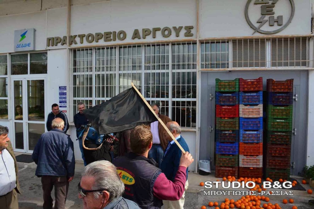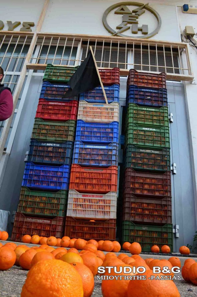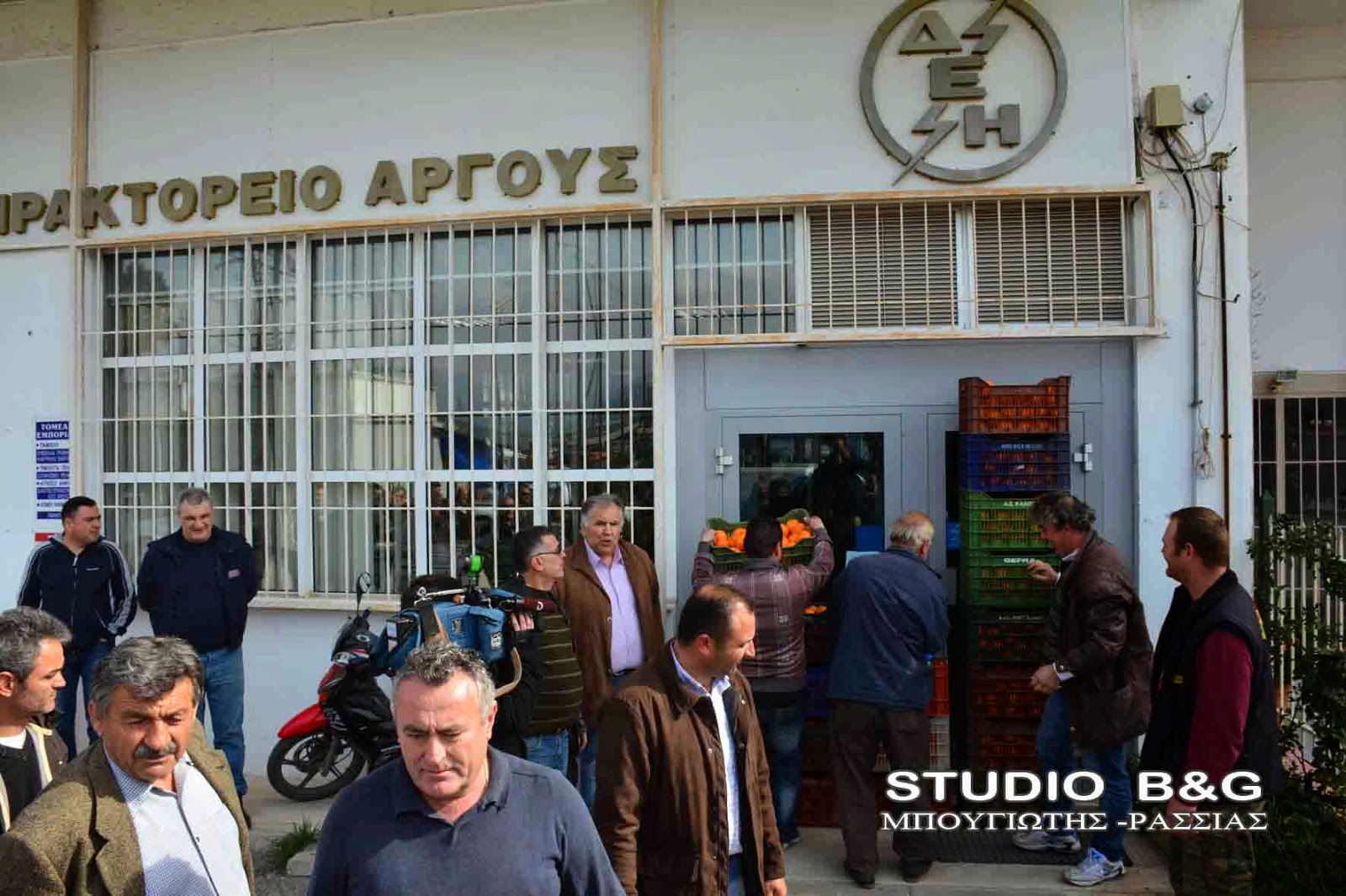 Στην Αργολίδα, οι αγρότες από το μπλόκο του Ξηριά πήγαν με τα τρακτέρ στο υποκατάστημα της ΔΕΗ Άργους, όπου αρχικά «έχτισαν» την είσοδο των γραφείων της ΔΕΗ με κλούβες από πορτοκάλια και στη συνέχεια τα πέταξαν στον δρόμο, ενώ άλλη ομάδα αγροτών μπήκε στα γραφεία της ΔΕΗ και μοίρασε πορτοκάλια σε υπαλλήλους και το κοινό που βρισκόταν εκεί.