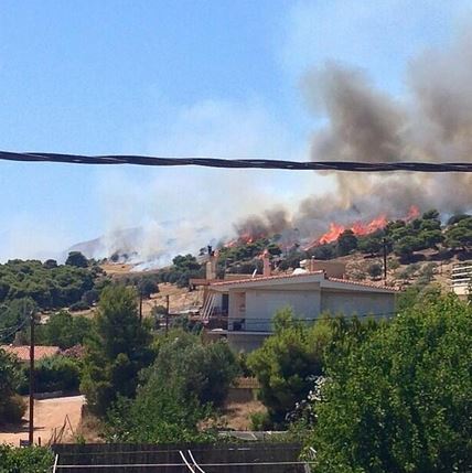 Όπως φαίνεται και από τις φωτογραφίες που έχουν ανεβάσει οι κάτοικοι στα social media η φωτιά απειλεί και τα σπίτια της περιοχής.
