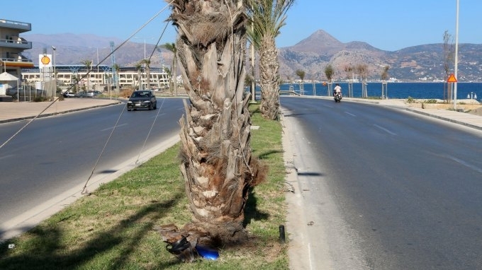 Έχασε όμως υπό αδιευκρίνιστες συνθήκες τον έλεγχο της μηχανής του και χτύπησε πάνω στο φοίνικα που έχει τοποθετηθεί στο διαχωριστικό του δρόμου.