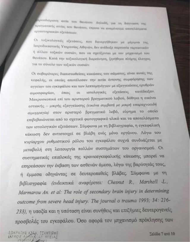 »Η εν λόγω κάκωση ήταν τόσο ισχυρή που μπορούσε να προκαλέσει τα τραυματικά ευρήματα επί του εγκεφάλου».