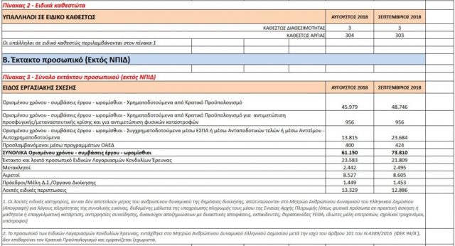 Οι συμβασιούχοι τον Αύγουστο του 2018 καταγράφηκαν στους 63.592, συνεχίζοντας μια πτωτική πορεία για τρίτο σερί μήνα, όπως θα δείτε και από τα στοιχεία.