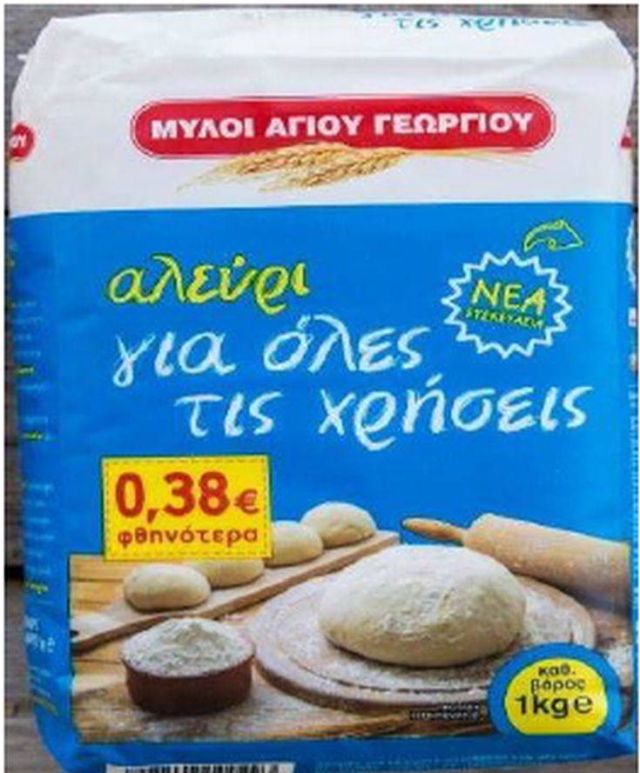 »Συγκεκριμένα, πρόκειται για το προϊόν “ΜΥΛΟΙ ΑΓΙΟΥ ΓΕΩΡΓΙΟΥ αλεύρι για όλες τις χρήσεις”, σε συσκευασία του 1Κg, με ημερομηνία λήξης 30/06/2019 και αριθμό παρτίδας 17582426418, το οποίο παρασκευάζεται από την εταιρεία ΜΥΛΟΙ ΛΟΥΛΗ ΑΕ με έδρα στη Σούρπη Μαγνησίας.