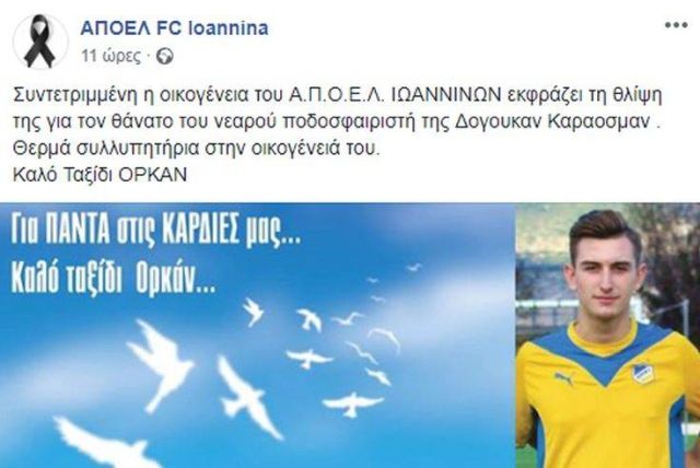 «Ο Πρόεδρος και τα μέλη της Ε.Ε. της Ε.Π.Σ.ΗΠΕΙΡΟΥ εκφράζουν τα βαθύτατα συλλυπητήρια στην οικογένεια και τους οικείους, καθώς και στην ποδοσφαιρική ομάδα του Α.Π.Ο.ΕΛ. που αγωνίζονταν, για την απώλεια του νεαρού φοιτητή από την Ξάνθη ΚΑΡΑΟΣΜΑΝ ΔΟΓΟΥΚΑΝ».