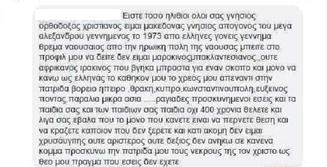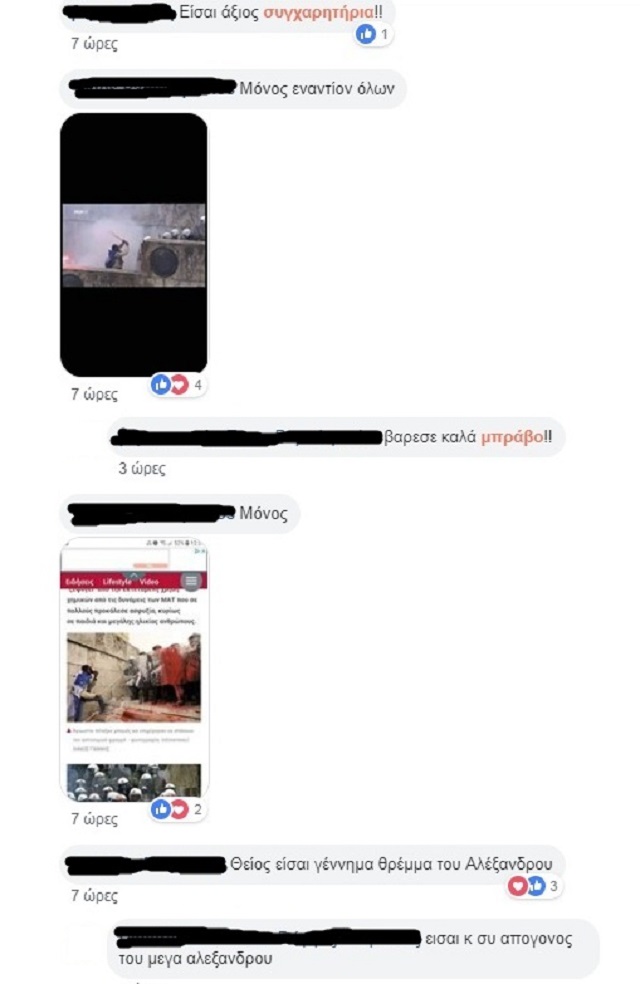 Στο προφίλ του μάλιστα δέχεται συγχαρητήρια από ομοϊδεάτες του για τη δράση του.