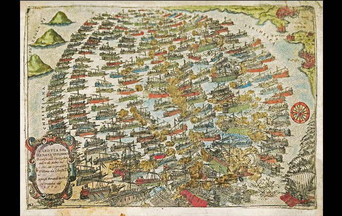 – Τόμος με 29 (από τις 67) χαλκογραφίες από το Civitatum aliquot insigniorum et locorum magis munitorum exacta delineatio του D. Bertelli (Βενετία 1574), στις οποίες έχει προστεθεί μία εξαιρετικά σπάνια απεικόνιση της Ναυμαχίας της Ναυπάκτου.