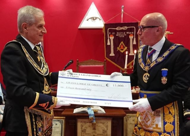 Την επιταγή είχε παραδώσει στη Μεγάλη Στοά της Ελλάδος ο Περιφερειακός Μεγάλος Διδάσκαλος της Κύπρου Μιχαήλ Χατζηκωνσταντάς.