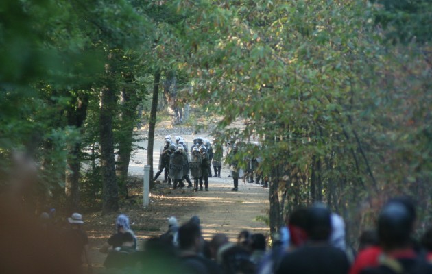 Οι κάτοικοι πραγματοποιούσαν στο σημείο συγκέντρωση ενάντια στην εξόρυξη χρυσού. Όπως ανακοινώθηκε από την Αστυνομία, κατά τη διάρκεια έντασης, τραυματίστηκε ένας αστυνομικός.