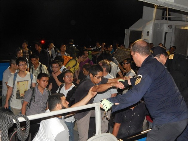 Στη φρεγάτα επιβιβάστηκαν συνολικά 186 πολίτες εκ των οποίων 77 είναι από Ελλάδα (συμπεριλαμβανομένου του προσωπικού της ελληνικής Πρεσβείας), 12 από Κύπρο, 78 από Κίνα, 10 από Ηνωμένο Βασίλειο, 7 από Βέλγιο, 1 από Ρωσία και 1 από Αλβανία.