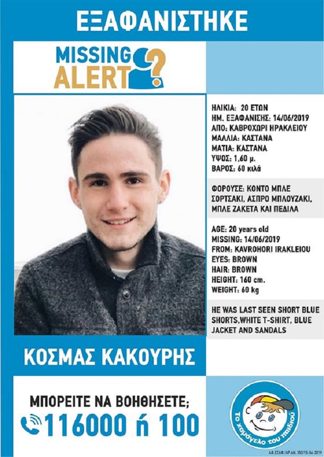 «Θρίλερ» στην Κρήτη με την υπόθεση εξαφάνισης του 20χρονου φοιτητή Κοσμά Κακούρη από την περιοχή του Καβροχωρίου.