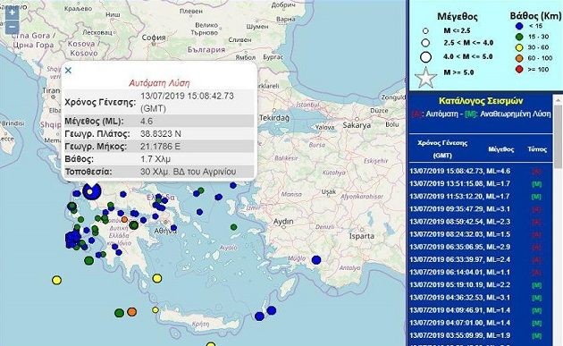 Ο σεισμός είχε εστιακό βάθος 28 χλμ. και το επίκεντρό του εντοπίζεται 28 χλμ. βορειοδυτικά του Αγρινίου.