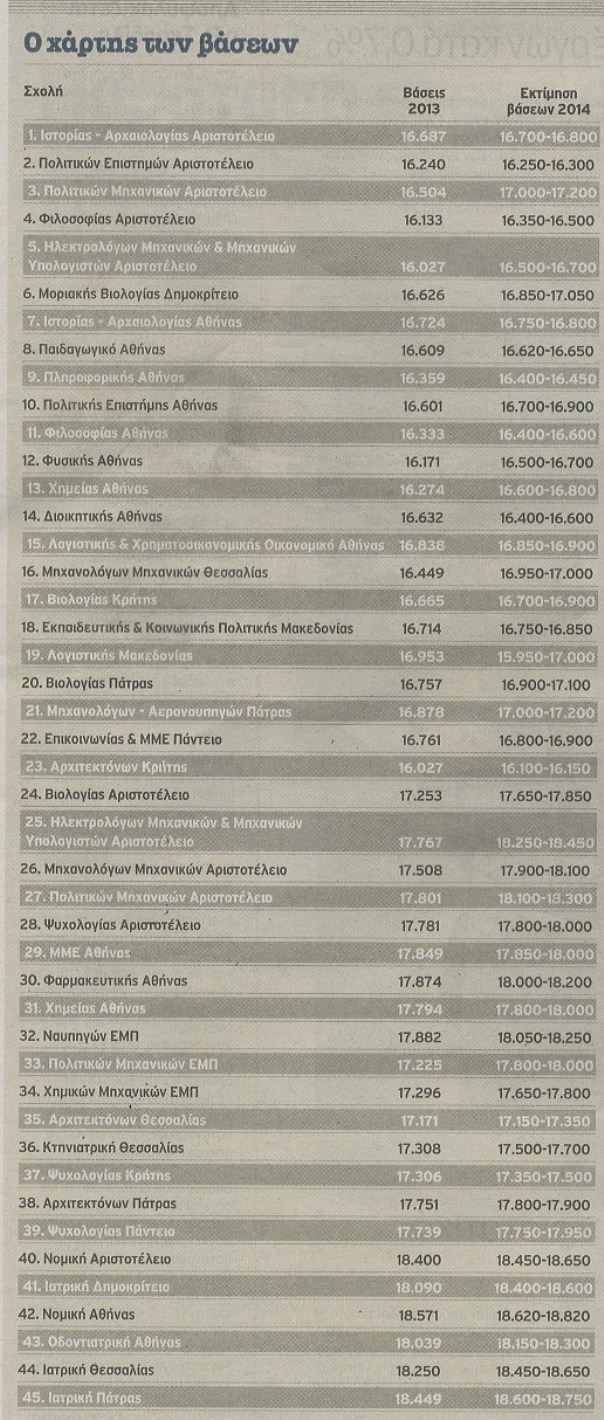 Μεγάλη άνοδος αναμένεται στις βάσεις εισαγωγής σε 45 σχολές ΑΕΙ, σύμφωνα με την έως τώρα επεξεργασία των στοιχείων.