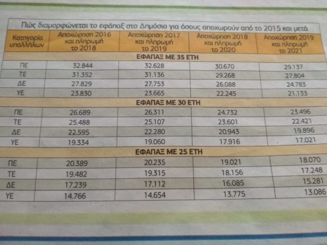 Δείτε στον παρακάτω πίνακα του «Ελεύθερου Τύπου» πώς διαμορφώνεται το εφάπαξ:
