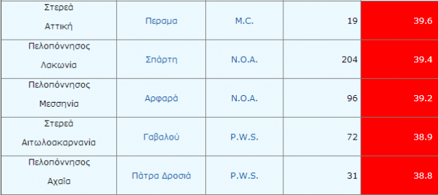 Οι 5 πιο υψηλές θερμοκρασίες σήμερα το μεσημέρι