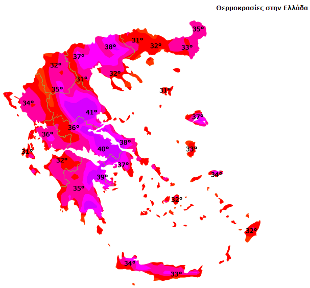 Όμως η πιο δύσκολη ημέρα θα είναι αύριο το θερμόμετρο θα ξεπεράσει τους 41 βαθμούς και τοπικά μπορεί να φτάσει και 42.