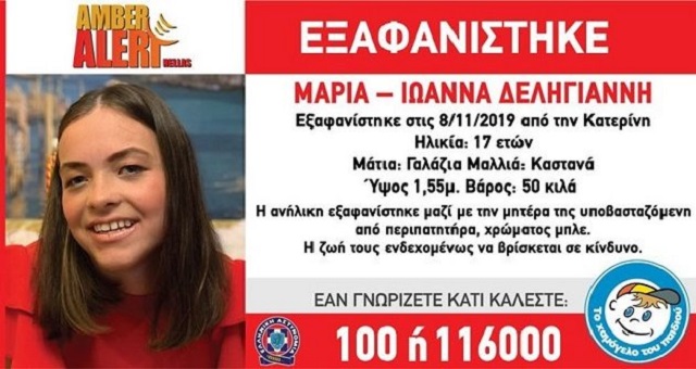 Θρίλερ με τη διπλή εξαφάνισης της 17χρονης Μαρίας-Ιωάννας μαζί με την μητέρα της στην Κατερίνη, για τις οποίες εκδόθηκε Amber Alert, κατόπιν συναίνεσης των Αστυνομικών Αρχών.
