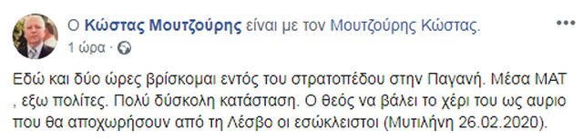 Σε ανάρτησή του στο Facebook, περίπου στις 21.00 της Τετάρτης, ο περιφερειάρχης Κώστας Μουτζούρης έγραψε: