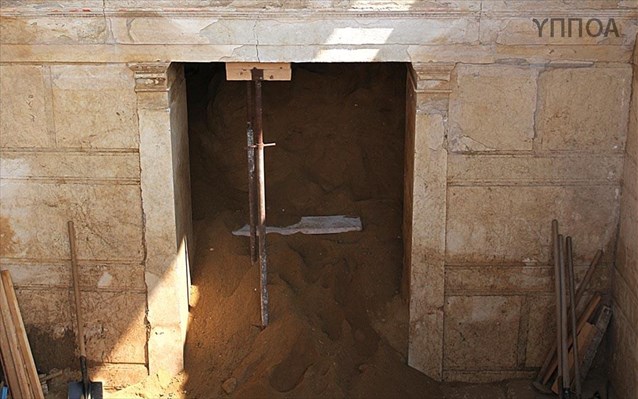 Επί του διαφραγματικού τοίχου αναμένεται να υπάρχει δεύτερη είσοδος που οδηγεί στο εσωτερικό του μνημείου. Τα χώματα του χώρου που δημιουργείται όπισθεν της θύρας, θα αφαιρεθούν στις επόμενες μέρες, εφόσον το επιτρέψουν οι εργασίες στερέωσης και συντήρησης στα σημεία, που έχουν αποκαλυφθεί.