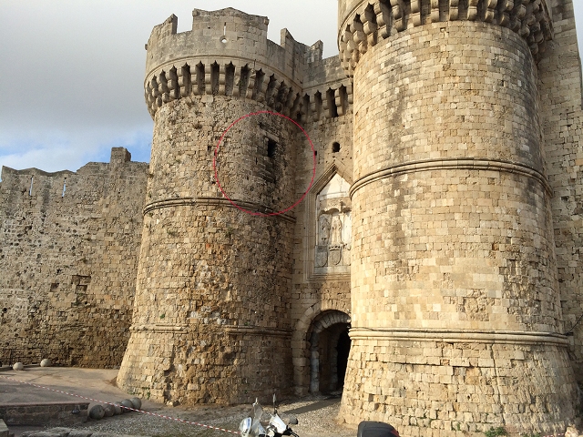 Ηείσοδος έχει σφραγισθεί και αστυνομικοί της σήμανσης έχουν συλλέξει τμήματα του εκρηκτικού μηχανισμού, οποίος τοποθετήθηκε σε παράθυρο στην αριστερή κολώνα και σε σημείο που η πρόσβαση είναι εξαιρετικά δύσκολη, αφού θα πρέπει κάποιος να διανύσει απόσταση πάνω στα Μεσαιωνικά τείχη από το γραφείο της ΔΕΗ.