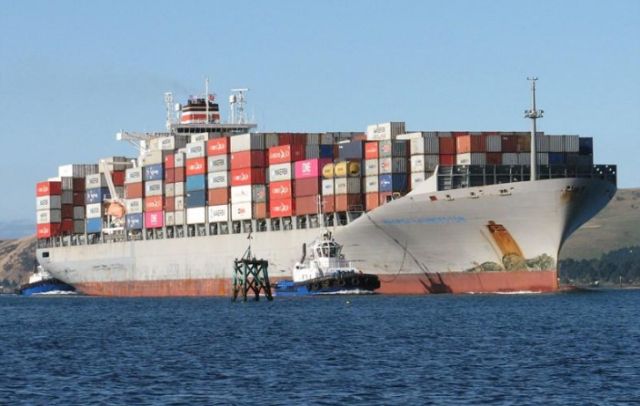 Στο φορτηγό πλοίο, που όπως φαίνεται από τη φωτογραφία είναι ένα αρκετά μεγάλο πλοίο (φωτό κάτω) έχει απαγορευθεί ο απόπλους μέχρι την αποκατάσταση των ζημιών.