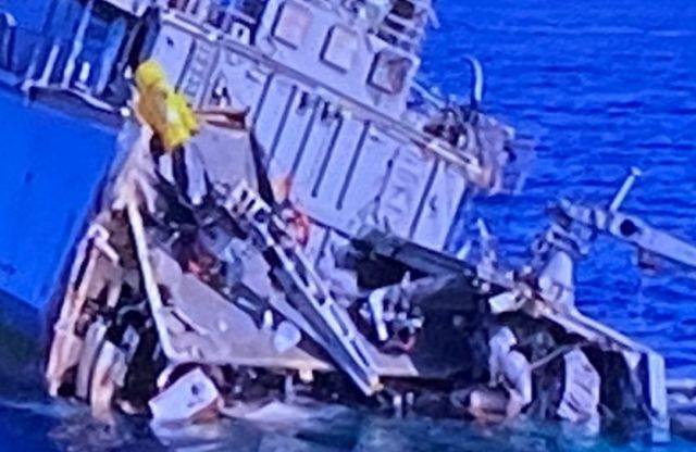 Το «Καλλιστώ» έχει πάρει κλίση λόγω της εισροής υδάτων, ωστόσο η κατάστασή του είναι πλέον σταθερή και δεν συντρέχει λόγος ανησυχίας.