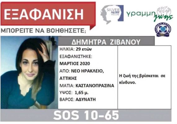 Μετά από οκτώ μήνες εντοπίστηκε η 29χρονη αγνοούμενη μητέρα δύο παιδιών, Δήμητρα Ζιβανού, η οποία είχε εξαφανιστεί στο Νέο Ηράκλειο την περίοδο της πρώτης καραντίνας και από τότε τα ίχνη της είχαν χαθεί, με τη Γραμμή Ζωής να ανακοινώνει μόλις πριν από μερικές ημέρες την εξαφάνιση της.
