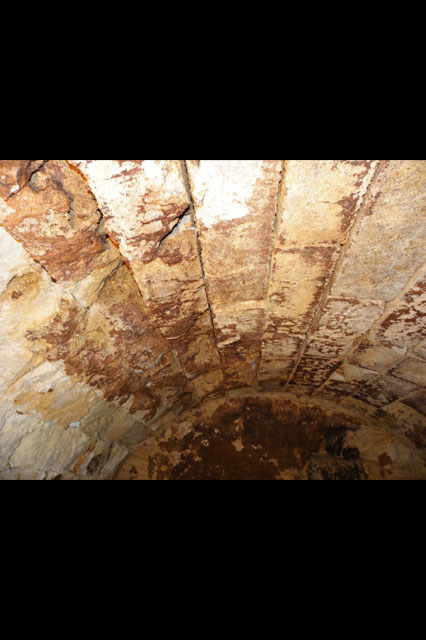 Η θόλος του θαλάμου δείχνει να βρίσκεται σε κατάσταση οριακής ισορροπίας με τους θολίτες στην περιοχή της στέψης να παρουσιάζουν άνοιγμα αρμών, σε ικανό βάθος, από την εσωτερική επιφάνειά της. Στο σύνολο σχεδόν των θολιτών παρατηρούνται ρηγματώσεις και επιπλέον σε εκτεταμένες περιοχές, εκατέρωθεν της στέψης, διαπιστώθηκε σημαντική απώλεια μάζας του υλικού.