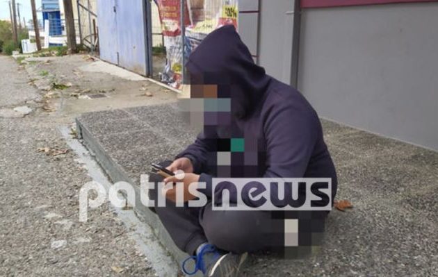 Πολύ καλά ντυμένος, φορώντας και κουκούλα στο κεφάλι για το κρύο, με ένα κινητό τηλέφωνο, και δίπλα του την σχολική τσάντα, παλεύει τις τελευταίες μέρες για… ιντερνετ, για να μην χάνει τα μαθήματά του, για να εμφανίζεται κανονικά!
