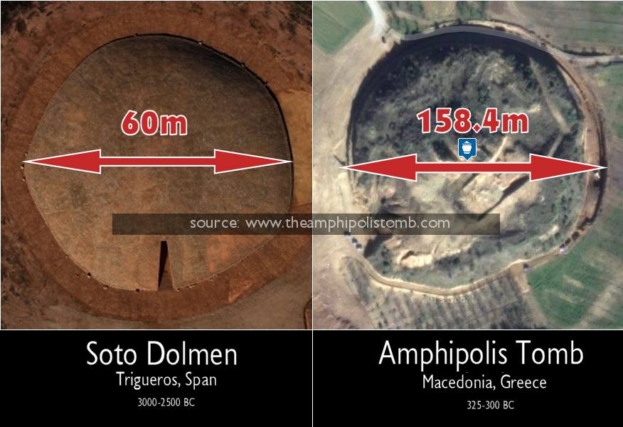 Σύγκριση μεγέθους του Τάφου στην Αμφίπολη με το Soto Dolmen (Trigueros, Ισπανία)